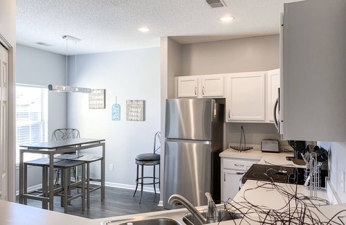 The two bedroom, two bathroom condo has recently been renovated with a tasteful, modern twist. The inviting main living area is spacious enough to accommodate everyone in your group. The kitchen is well equipped with all the dishes, glassware, pots and pan that you will need, as well as a coffee maker, toaster, blender, ice maker and much more. There are two dining area; a smaller bar top table in the kitchen nook and a bigger dining room table to host your family dinners. The master bedroom has two queen beds and the second bedroom has one queen bed. Every room is equipped with a flat screen TV, DVD player & wireless internet. Ample linens and towels are provided, there is also a washer and dryer for your convenience. The best feature of this condo is the cozy, screened in porch where you can enjoy your morning coffee.