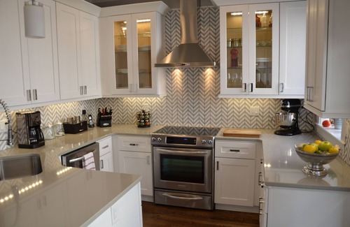 The home has two luxurious bedrooms with hotel-quality bedding; each with its own private ensuite bath and a downstairs half bath. The chef's kitchen is equipped with top-of-the-line appliances to handle your next culinary adventure and comfortable living room boasts a 55" 4K Smart TV to help you unwind.
