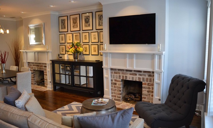The home has been fully renovated to accommodate the comforts we've all come to know and love while not sacrificing on the historic charm. You can enjoy your meals in the dining room or dine al fresco on the private patio with a working outdoor fireplace to help you set the mood.