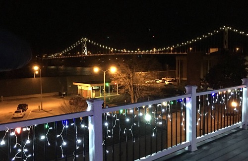 This 3rd floor unit used to store the Ledger’s Newspaper dating back to 1850s. It’s now a beautiful 2 bedroom 2 bathroom penthouse with all the modern amenities including stainless steel appliances, Chef’s gas stove, in unit front load washer and dryer, on demand water heater, and HVac system. The beautiful white quartz island boasts seating for 4 and double sided cabinetry for ample storage. The high ceiling, exposed wood beams and bricks brings elegance and historical sense. The unit has an open floor plan which boasts a view of downtown on one side and Ohio River and the beautiful Simon Kenton bridge on the other. The addition of Trex decking not only offers an expansive outdoor area but even more impressive view of the river and bridge from this 3rd floor unit. This unit is in the heart of the beautiful Maysville Entertainment District. Restaurant, bars, and stores are just a walking distance. Public parking is plenty directly behind the building. This historic unit has a rather steep stairs so I caution anyone who has difficulty climbing up.