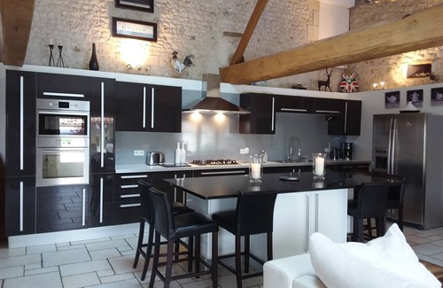 - Spacious, double height, beamed main space. This gite is in a rural setting.