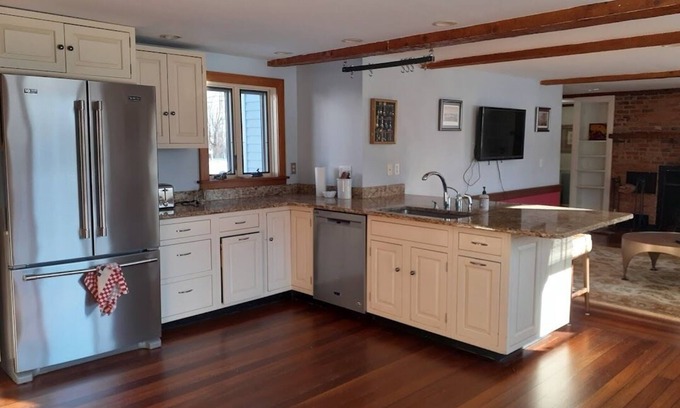 If you're seeking a charming wedding accommodation, the Beautifully Restored Farmhouse Apartment 1st Floor in North Yarmouth offers an idyllic setting to celebrate your special day. This lovely property combines comfort and accessibility, making it an ideal choice for wedding groups.