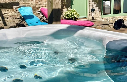 This property is utterly charming and full of original character. This old Victorian coachhouse has recently been restored to the highest specification, keeping original walls as a feature and the original hay bale hatch off one of the bedrooms is now a large picture window overlooking a canopy of trees. Guests can expect a stunning interior, beach towels for use with the Villeroy and Boch hot tub and a lovely landscaped private green to enjoy sun and silence. We like to get your holiday off in style and you will be welcomed with welcome bubbles on ice and a goody basket. The hot tub will be nicely warmed for your arrival. It is very peaceful and private yet perfectly located to enjoy all that Cornwall has to offer from beaches, to country walks, fine dining and music festivals throughout the year. A stunning links golf course is only a 5 minute drive away, as are surf and riding schools..and more!