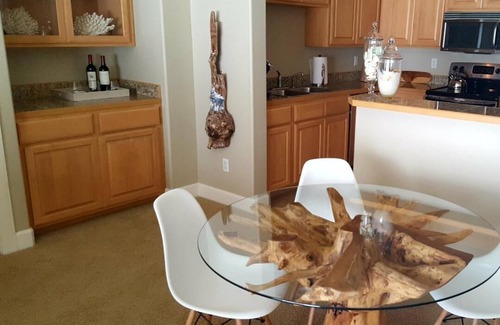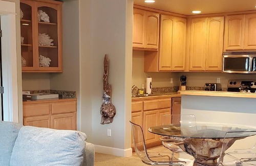 The condo features two private ensuite bedrooms, perfect for couples, families, or friends, a spacious kitchen, on-site parking and more.