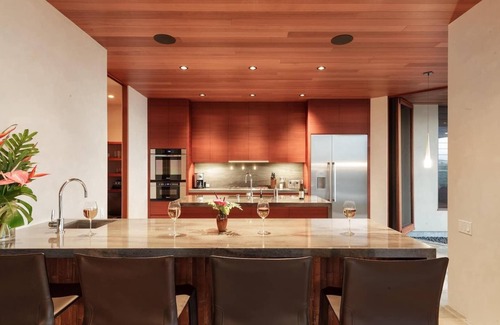 Beauty and modernity meet in this standout oceanfront home perched above Secret Beach is located in Kilauea. Beauty and modernity meet in this standout oceanfront home perched above Secret Beach provides accommodation, featuring Accessibility, Hot Tub, Internet, among other amenities. This House features Accessibility, Hot Tub, Internet, to make your stay a comfortable one.