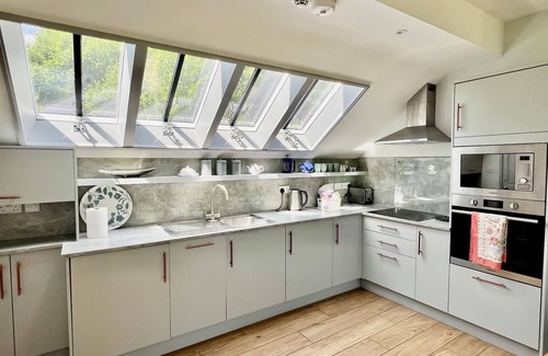 With oven and induction hob, microwave, fridge freezer, washing machine and underfloor heating.