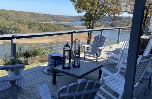 Picture yourself on a large deck in a well appointed Lakehouse on a hilltop looking out over Beaver Lake in the Arkansas Ozarks. Your master bedroom is furnished with a king size bed, large dresser and armoire. Your master bath offers a large shower, a Jacuzzi tub and twin sinks. The open floor plan living area has a large granite island for serving and seating. Your kitchen includes a Bosch refrigerator/freezer, a microwave, a Forno gas range/hood, a Kitchen Aid dishwasher and all you need to make meal prep easy and enjoyable.