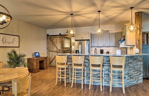Situated off the beaten path on the shores of Beaver Lake, this 1-bedroom, 1-bath lakefront vacation rental is a nature lover's dream. This updated apartment features a rustic-yet-modern interior, furnished patio, and a fire pit for roasting marshmallows after a fun-filled day! Spend days exploring the natural beauty of Arkansas from Hobbs State Park, cruising the 28,000 acres of clear water by boat, or ride into town to discover top museums and historical sites!