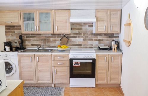 A living room, a BBQ grill, and air conditioning are featured at this 1-bedroom, 1-bathroom rental. Bathroom amenities include a hair dryer, towels, and toilet paper. The kitchen is equipped with an oven, a stovetop, and a refrigerator, as well as a coffee maker, an electric kettle, and a microwave. And because there's a washing machine, you can go a bit lighter on your packing.