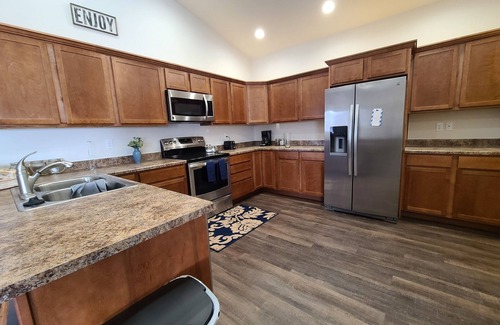 Enjoy relaxing at our house right in town, yet close to all the outdoor exploring you can handle. Plenty of room with this open floor plan, vaulted ceilings and 2800 Sq ft home. Great views right out the oversized living room window.