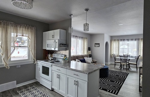Enter the home through the breezeway that provides seating and enough room to store all your outdoor gear. Even use it to sit and enjoy your coffee in the morning. You will feel at peace inside with a clean, tidy atmosphere without clutter. The kitchen is stocked with everything you need to cook during your stay and coffee and creamer is provided. The kitchen opens up to the living/dining area with an open concept feel. There are 2 bedrooms with black out curtains for the late sleeper. Relax in the living room and watch a movie on the Roku TV. The living room has a comfortable sofa bed perfect for the kids or adults. There are 2 seating options for dining which seat 6. The bathroom is stocked with towels, a hair dryer, and plenty of soap for your showering/bath needs. In the basement you will have access to a washer and dryer as well as laundry soap during your stay. Also included in the house is a pack-n-play, baby gate, changing pad/station, High chair, toys and books for kids as well as games. Local menu's and area tourist information is provided along with recommendations.