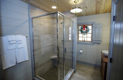 We are a family run bed and breakfast in a restored circa 1795 hand-hewn log cabin decorated with period antiques. The room contains a queen bed w/Beautyrest mattress with the linens provided. In addition to the log cabin walls, the room has hand sewn exposed beams. The bathroom has an enclosed tile shower with towels and toiletries provided. For those chilly mornings the room has heated reclaimed wood floors. If you are interested in relaxing there is a porch with a porch swing and rocking chairs, perfect for a tall glass of sweet tea sipping and just taking in the view of the rolling hills. The room also includes a coffee maker and coffee, a refrigerator and WiFi.