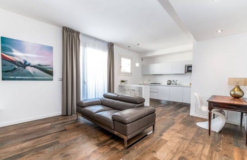 The suite, with an elegant and contemporary design, has a separate bedroom, a large living room with a fully equipped kitchenette and a modern bathroom with complimentary toiletries and a hairdryer. Among the services offered are free Wi-Fi, air conditioning and a flat-screen satellite TV, for a comfortable and relaxing experience.