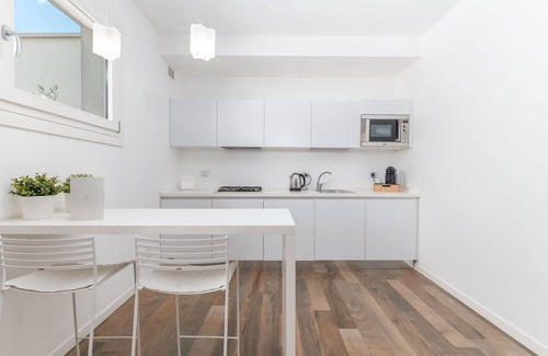 Suite Aria is an elegant double bedroom with bathroom and kitchen inside Santo Stefano - Raro Rooms Collection.