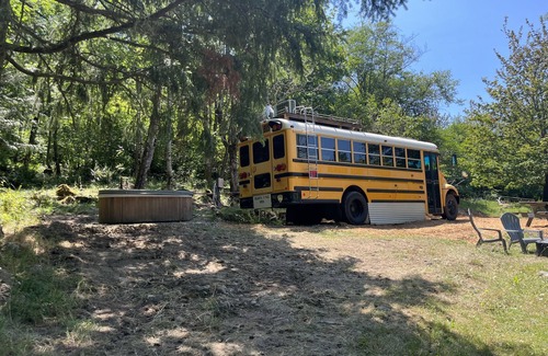Bee Haven Bus at the RMR Farmstead with hot tub | House in Rainier