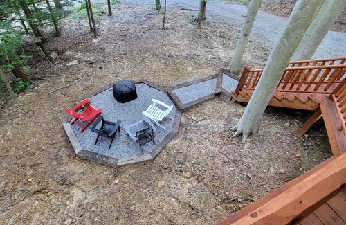 Enjoy our custom built log home, nestled on a private wooded location surrounded by beech trees. A ten-minute drive to Old Man's Cave and Hocking Hills State Park. Fully equipped kitchen with brand new appliances and hickory cabinets, two queen bedrooms, and full bathroom with shower/tub combination. Indoor gas fireplace. Big screen TV. Outside enjoy the wildlife on two covered porches, relax in the luxury hot tub, and roast s'mores at the firepit. Perfect for couples or a small family. This peaceful retreat is so special you won't want to leave.