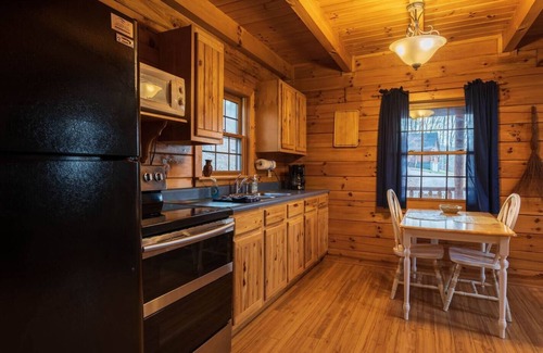 Looking for a romantic getaway? All wood log cabins on private property located in the Hocking Hills area just 10 minutes from Ash Cave/Cedar Falls. Private hot tub, full kitchen, charcoal grill, fire ring with firewood available. Pond with gazebo on site