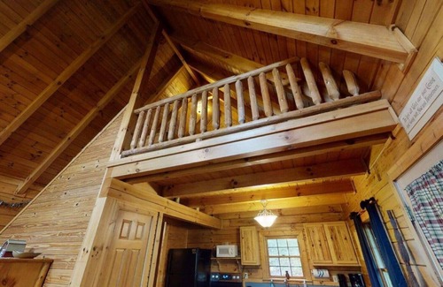 Beechwood was the second cabin to grow our business. It provides wheelchair access with a ramp leading to the front door. Inside you'll find a blue theme with an open floor concept and a loft bedroom. Cuddle up on the couch in front of a gas log fireplace, or go out front and make your own fire at the ring. On the screened-in back porch you'll have a nice view of the woods leading down the hill. With it facing the back you will have privacy and exclusive use of the hot tub. There is a decent stereo with bluetooth to listen to music, a fully equipped kitchen, and games for your use.