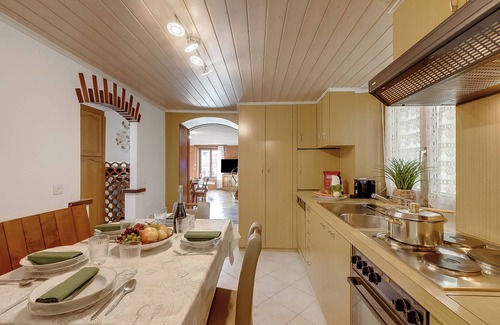Situated in the ancient village of Ronco Sopra Ascona, this charming apartment offers a rustic retreat with breathtaking lake and mountain views. Easily accessible on foot via Vicolo Sorazzi, the flat features a stunning living room with a cosy fireplace, comfortable sofas, a dining table, and a flat-screen TV. Adjacent to the living area is the first bedroom, with a window inviting natural light. The adjoining kitchen is fully equipped with a cooker hob, an oven, a dishwasher, a coffee machine, an electric kettle, a toaster, and a fridge with a freezer. A separate dining table with chairs in the kitchen creates the perfect setting to savor family meals.