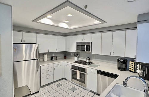 The open living space opens into a remodeled kitchen. The kitchen is convenient to the propane BBQ located in a lovely atrium. You certainly don't have to (you are on vacation!), but the kitchen and Bbq will tempt you to stay in.
