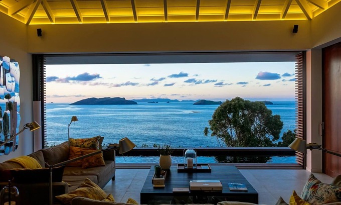 From the window, you have a glimpse of the spectacular view over the Caribbean sea, the northwestern coast of St Barts, and the nearby islets of Bonhomme and Chevreau. In the background, over the stretch of seawater, you can see the very hilly St Martin and the very flat Anguilla. As the villa is cliffside right above the sea, you feel like being in the cabin of a luxurious cruise ship and, at the same time, on board a private jet.