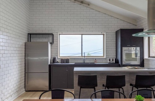 Down the hallway you’ll find four gorgeous bedrooms, each thoughtfully styled for a good night’s sleep. Two of the bedrooms each contain queen-sized beds, while the lovely child-friendly bedroom offers two single beds. At the end of the hallway, you’ll find the grand master suite custom made for parents’ privacy. It has a seating area with a TV, luxurious king-sized bed and ensuite bathroom. A main bathroom helps guests to feel refreshed with a bathtub and separate shower, while an internal laundry room adds to your everyday convenience.