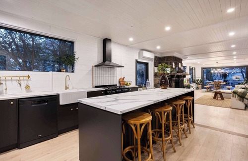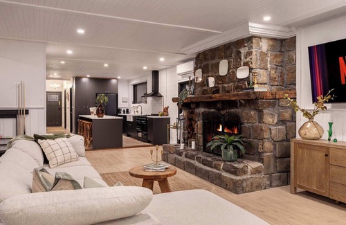 This luxurious accommodation boasts a plethora of amenities, making it perfect for both relaxation and entertainment. Indulge in a 6-seater gas-heated spa or rejuvenate in the cedar wood barrel sauna after the festivities. The outdoor alfresco area features dining options, a BBQ, a fireplace, and a Smart TV – perfect for evening gatherings under ambient lighting. Inside, the open-plan living/dining area invites warmth with its wood-burning fireplace, while the fully-equipped modern kitchen caters to all your culinary needs. Six beautifully appointed bedrooms and three bathrooms ensure comfort for you and your guests, while an enclosed backyard offers a safe play area for children.