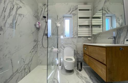 - Room with private bathroom, garden and modern amenities in a beautiful area.