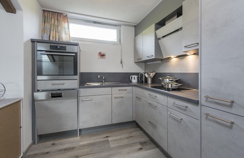 The equipment includes a cosy bedroom with a double bed and a bunk bed. The apartment offers an additional sleeping option on the comfortable sofa bed as well as a modern bathroom with a bathtub. The fully equipped kitchen features an induction hob, refrigerator, freezer and all necessary utensils. WiFi and central heating ensure pleasant comfort, and private parking spaces are available in a garage as well as in an outdoor area. Additionally, there are sufficient storage options for your sports equipment.