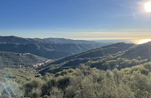 Beautiful single-family house "Bellaria", detached, built in 2020, surrounded by trees. 300 m from the centre of Valloria, on the outskirts, 14 km from the centre of Imperia, 33 km from the centre of San Remo, in a secluded, sunny, elevated position on a slope, 14 km from the sea, 4 km from the lake, in the countryside. For shared use: tennis. Private: natural state property 3'000 m2 with trees, lawn for sunbathing, swimming pool (8 x 4 m, depth 140 cm, seasonal availability: 01.Jan. - 31.Dec.) with internal staircase. Outdoor shower, pool maintenance by the owner/gardener. In the house: storage room for bicycles, bicycle rental. 1.5 km long bumpy, narrow motor access to the grounds (via unmade road). Stepped path (10 steps) to the house. Parking (for 2 cars) on the premises. Shop 4 km, supermarket 14 km, restaurant, bar 300 m, bakery 4 km, bus stop 400 m, railway station "Imperia Oneglia" 19 km, sandy beach "Imperia" 14 km. Nearby attractions: Valloria,Dorf mit 160 bemalten Türen 300 m, Olivenölmühle in Dolcedo 4 km, Lavendeldestilation in Pantasina 8 km. Hiking paths: Monte Faudo (1149 m) Mountainbike Trails.