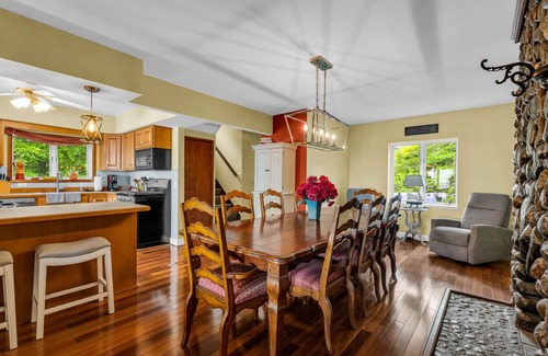 Step inside this cozy 3-bedroom, 2.5-bath getaway where comfort meets character. The main floor offers a spacious king bedroom with its own private ensuite—perfect for relaxing after a day on the lake. Upstairs, you’ll find a peaceful queen bedroom and a fun bunk room with four twin beds—great for kids, cousins, or that late-night card game crew. A full bathroom upstairs ensures everyone has space to unwind. The interior has a nostalgic charm, with homey touches and a welcoming vibe that makes you feel like you’ve arrived at your favorite family cabin—because you basically have.