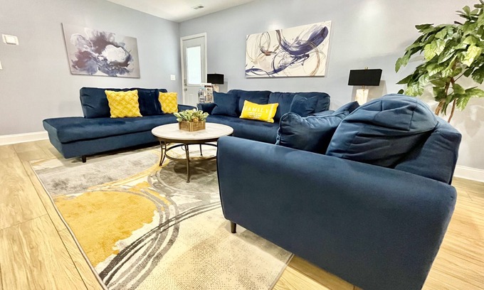 A living room, a fireplace, air conditioning, and a desk are featured at this 3-bedroom, 1-bathroom rental. Bathroom amenities include a hair dryer, towels, and toilet paper. The kitchen is equipped with an oven, a stovetop, and a refrigerator, as well as a coffee maker, an electric kettle, and an ice maker. And because there's a washer and dryer, you can go a bit lighter on your packing.