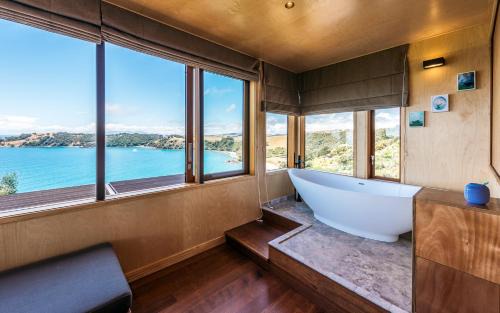 A 16-minute walk from Onetangi Beach in Onetangi, Belle Cove Estate, Onetangi - Be My Guest Waiheke provides accommodations with access to a hot tub. This property offers access to a terrace and free private parking. With free Wifi, this 4-bedroom vacation home features a flat-screen TV, a washing machine, and a fully equipped kitchen with a dishwasher and oven. Guests can take in the views of the sea from the balcony, which also has outdoor furniture. There's also a seating area and a fireplace. There is a garden with a barbecue at this property, and guests can go cycling and hiking nearby. Wild on Waiheke is 2.3 miles from the vacation home. Auckland Airport is 30 miles from the property.