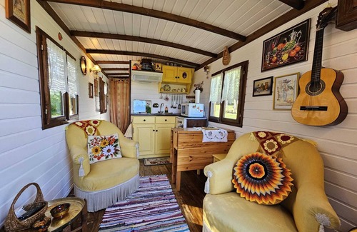 Belle des Prés" caravan, Nordic bath and shared pool has 1 Bedroom , 1 Bathroom, and max occupancy of 2 people. The minimum rental for this property is 1 nights, but this can change depending on the season you plan on staying. Previous guests have given good rated it, and VRBO labeled it a top-rated Cabin because of the excellent services rendered by the owner or manager of this Cabin, and has consistently provided great experiences for their guests. Most families or guests that use it recommend it to their friends and some of them are repeat guests. Cabin has a friendly neighborhood, and the Sigalens has interesting places to visit. If you want to learn more about the Cabin in Sigalens, such as places to visit and things to do nearby, you can check below to learn more.