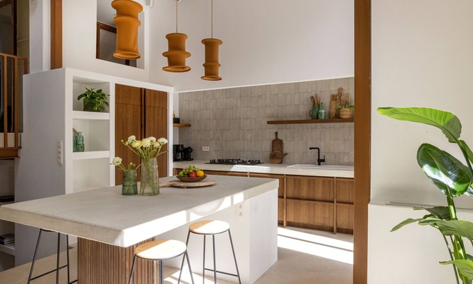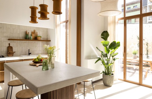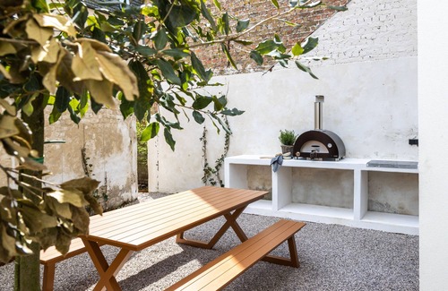 - Through large windows, the kitchen opens onto a cosy city garden where you can bake delicious pizzas on a gas-fired pizza oven.