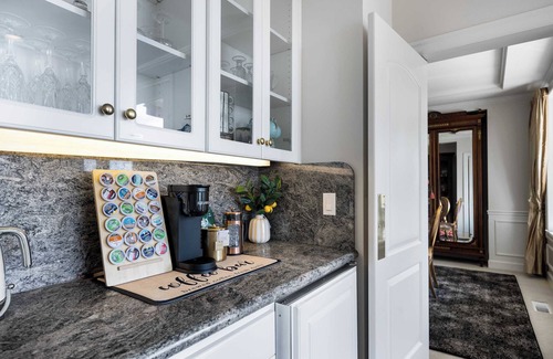 The fully equipped kitchen with a complete coffee setup with many brewing options allows you to add your own personality to each beverage.