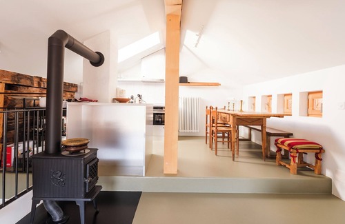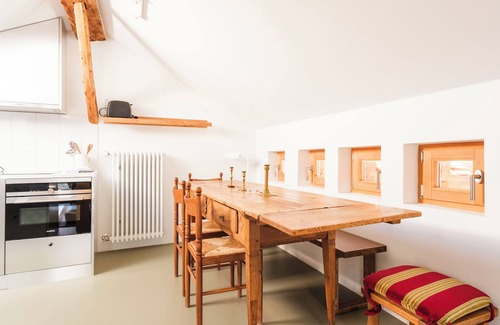 Bellevue is the upper unit of the chalet offering a spacious living room with kitchen and a balcony, offering a stunning view into the valley. It has two modern bedrooms with confortable double beds. The lower bedroom has its own private bathroom and shower. A comfortable sleeping sofa in the living room allows up to 6 people to enjoy the apartment.
