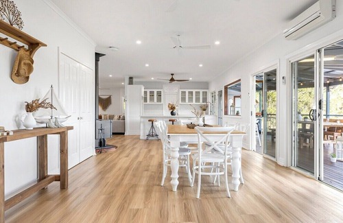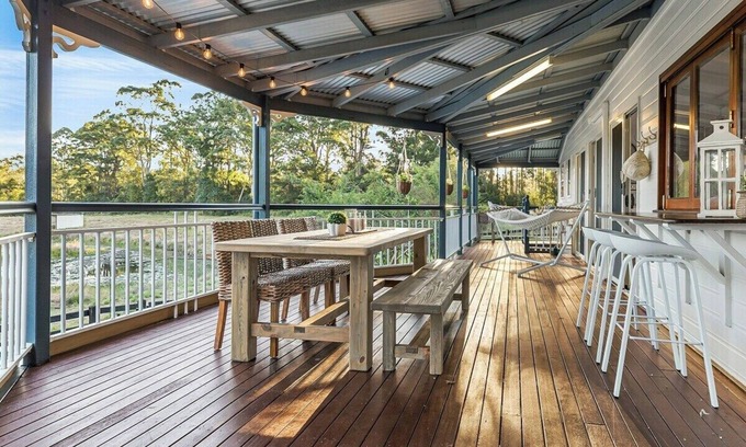 Welcome to Belli Park Manor – a beautifully renovated old Queenslander home nestled on 80 acres of natural beauty. Accommodating up to 10 guests, this stunning retreat features a large outdoor pool, cosy indoor wooden fireplace, air-conditioning, and breathtaking views. Experience the perfect blend of heritage charm and modern luxury at this serene getaway, with expansive green spaces and wildlife at your doorstep — perfect for unwinding or exploring the Sunshine Coast hinterland.