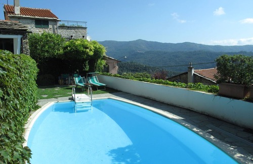 Beautiful cottage, 2 storeys, semi-detached. In the hamlet Bellissimi 4 km from the centre of Dolcedo, 13 km from the centre of Imperia, on a slope, in the residential district, 11 km from the sea. For shared use: swimming pool (8 x 4 m, depth 150 cm, seasonal availability: 01.May. - 15.Oct.). Outdoor shower, pool maintenance by the owner/gardener. Private: beautiful, well-kept garden 200 m2 (fenced) with lawn and trees, lawn for sunbathing. Patio, arbour, garden furniture. In the house: washing machine (for shared use). 200 m steep footpath to the house. Public parking 200 m. Shop 4 km, supermarket 13 km, restaurant 5 km, bus stop 200 m, railway station "Imperia Porto Maurizio" 13 km, pebble beach "Imperia Porto Maurizio" 13 km, outdoor swimming pool 10 km. Please note: the apartment is located in a zone with limited traffic. The complex has another 1 house for rent.