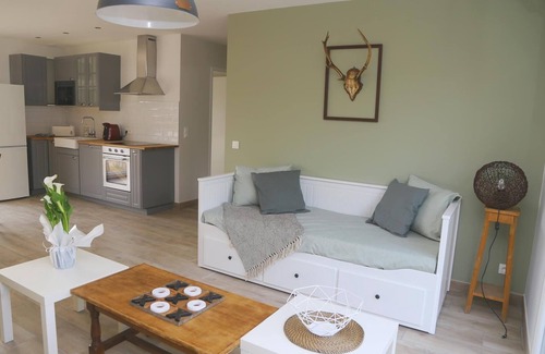 New independent house, on one level and accessible to people with reduced mobility, on the edge of the departmental road. 550 m² enclosed land (terrace, pétanque court, slide, molkky game). Closed parking for 3 vehicles. Living room / lounge with fitted kitchen area (microwave, freezer, TV). Nature theme parental suite (1 160 cm bed, bathroom, infrared sauna). 1 ch. Rimbaud theme (1 double bed). 1 ch. Ardennes theme (2 single beds). Shower room with wc. WC. Laundry room. Baby cot. Electric heating. Cleaning option 35 euros. 1 single animal accepted. Immediate proximity to shops and services within 10 minutes on foot. Museum of the Last Cartouche, Departmental Sports Center, Voie Verte on site. Fortified Castle of Sedan 5 km. Bouillon Castle 10 km. Place Ducale in Charleville Mézières 25 km. Fishing card on the website of the Fishing Federation or at the village tobacco shop. Possibility of fishing in the Meuse, Chiers and Givonne. Ecogestes approval.