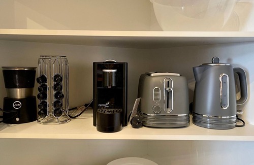 - Well-Equipped Kitchen: Prepare meals with ease in the compact kitchen equipped with everything you need, including a coffee machine to kickstart your mornings during your stay.