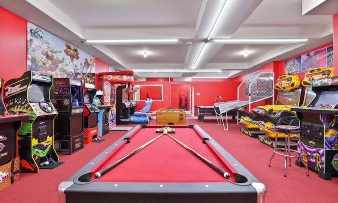 Come enjoy the massive free-play arcade game room with all your favorite characters and games, a private room with x-box gaming system And when it's time to unwind, the 6-7 person hot tub is the perfect place to chill out and relax.