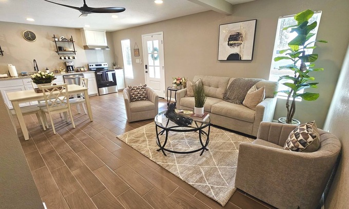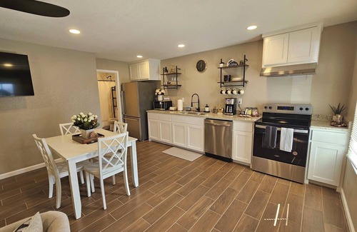 Welcome to your perfect getaway in Belton, Texas! This brand new 1-bedroom, 1-bath apartment is ideal for a peaceful escape, accommodating up to four guests with a queen bed and sofa bed. The apartment features a spacious bedroom, a well-appointed bathroom, and a stylish living area. The fully equipped kitchen and dining area provide convenience for meals. Just a few steps from Belton Lake Temple Lake Park, and the Bell County Museum, you'll also be near the University of Mary Hardin-Baylor. Space is limited for both trucks and boats.
