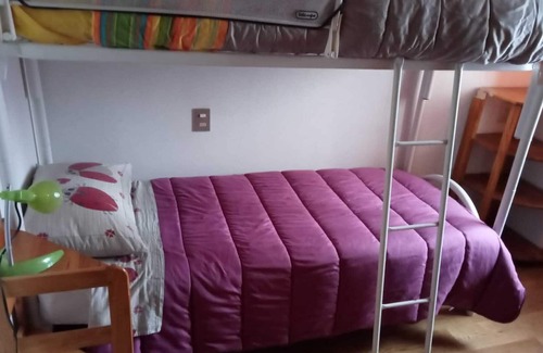 Layout: Ground floor: (Living room(single sofa bed, TV), Kitchen(espresso machine, microwave, fridge-freezer, Blender), bathroom(bath tub, toilet, bidet)) On the 1st floor: (bedroom(double bed), bedroom(bunk bed), bedroom(bunk bed), bathroom(shower, washbasin, toilet))