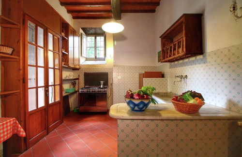 The farmhouse is large and tastefully decorated with Tuscan materials. The ground floor rooms are separated by old arches and floors have terracotta tiles. The bedrooms have wooden floors made of olive tree wood, chestnut, and Elmwood. There is central heating and a fireplace in the dining room. The garden is perfect for a barbecue. 1 pet is allowed and free parking is provided.