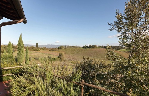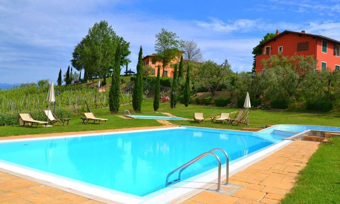 This apartment was created inside a farmhouse in the heart of Tuscany. It is a family-run business in a strategic position that allows you to visit the most important cities of the region without giving up the relaxing power of nature. The apartment is located entirely on the ground floor and has an outdoor area with a garden in front of the main entrance and a small terrace at the back with a view of the surrounding vineyards. The sun's rays will wake you up in the morning and you can enjoy your breakfast with a spectacular view of the Tuscan countryside.Guests have access to the panoramic swimming pool with bubble bath and children's pool, bowling alley, minigolf, volleyball court, playground, barbecue and wood-burning oven. The farmhouse is divided into 8 apartments distributed in two buildings. Already walking along the beautiful path leading to the farmhouse, bordered with cypresses, you can see the farmer's house with its characteristics \ turrets \. In addition to the garden surrounding the farmhouse, each apartment has a beautiful tiled terrace, ideal for spending your evenings, perhaps accompanied by a good glass of wine, while your children play on the front lawn, among the olive trees. Each apartment is tastefully furnished in a rustic Tuscan style, has an antique ceiling with exposed wooden beams, a well-equipped kitchen and a terrace / balcony with umbrella, table and chairs for dining out. The farmhouse is located just 1 km from the center of Stabbia. It is a strategic point for many trips and excursions in this area rich in cultural attractions and various activities. In the vicinity there is also Cerreto Guidi, with the prestigious Villa Medicea, which is certainly worth a visit. 50 km away there is Pisa where, in addition to visiting the tower, you can spend a nice day at the sea. A few kilometers away there are Monsummano Terme and the Grotta Giusti, the perfect destination if you want to spend a day