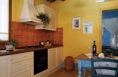 This Italian holiday home has an authentic, traditional décor and has been painted in many colours. You have 4 bedrooms and 4 bathrooms. Relax in the sun on the sunbeds outside and the children can play safely in the garden.