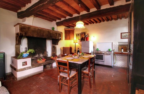 Furnished in typical Tuscan style, the house keeps you cozy with a fireplace in the spacious kitchen. Enjoy the beautiful valley and stunning nature from the terrace and garden while preparing the barbecue. Parking is available on the premises. You are allowed to bring 1 pet.