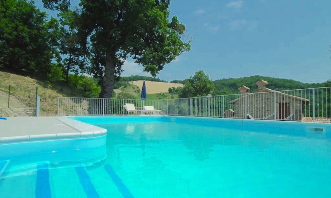 Why stay here? The homely farmhouse with swimming pool is located in Mercatello sul Metauro in Marche. It is perfect for a group of friends or families to have a great time. Things to do around Experience a walk from the Cesta tower via a winding panoramic pathway. You can also visit the Castello della Pieve to learn more about the town. On a day trip, you can explore the glaciated valleys of Monti Sibillini Park, the Farassi Caves in Ancona, and the mountain Monte Vettore with many trails. What to expect from the space This pet-friendly farmhouse has a patio and a private terrace to enjoy scenic views while you relish a glass of wine in the evening. Heating (paid), fireplace, and parking are provided for convenience. The furnished lush garden would be perfect for morning tea time or brunch. Boules court can be enjoyed in leisure hours. More for your stay Federico Fellini International Airport is 47 km away. Check-in and check-out timings are 4-7 PM and 8-10 AM, respectively. This house is suitable for 4 adults and 4 minors, not for 8 adults. Only a maximum of three small pets are permitted; medium and large pets are not allowed.