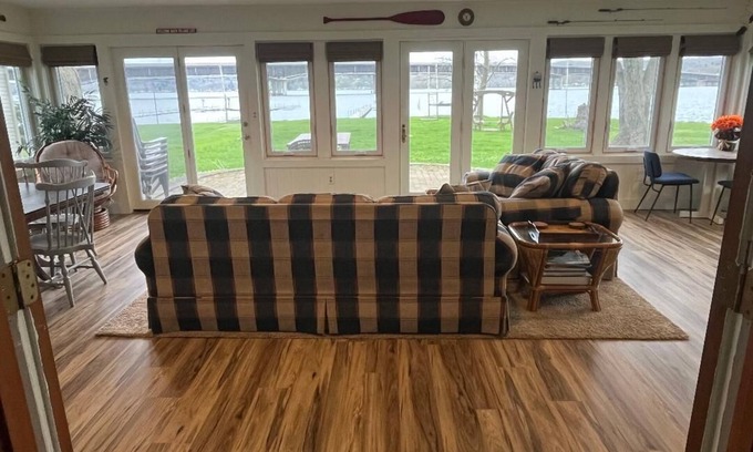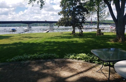 Relaxing Lakefront cottage in Bemus Point on Chautauqua Lake! This home has 4 bedrooms, 2 full baths with a family/TV room off the kitchen, extra large sunroom and dining area with new AC in the upper bedrooms and sunroom! Fully stocked kitchen, two refrigerators, washer/dryer, propane grill. Nice level yard with 50 feet of lakefront. Easy walking distance to The Village of Bemus Point--Stores , Restaurants, Golf Course, and much more. Park your boat at the private dock in the Spring, Summer, and early Fall, enjoy the fire pit feet from the lake and take advantage of the many year round activities Bemus Point and the surrounding community offers! The waterfront where the house sits is in a 5 mile an hour speed Zone--so no wakes. Catch bass right from the dock, short boat ride to lakefront dining, fishing, and water skiing/tubing!